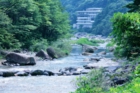 オートキャンプサイトは、鬼怒川沿いの少し高台にあります。